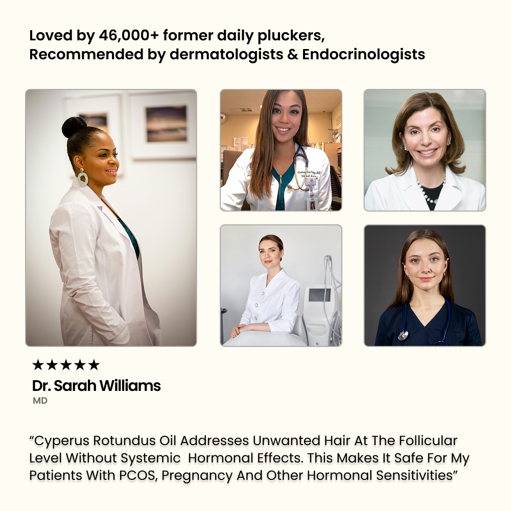 Cyperus rotundus oil is natural, gentle, and non-invasive. It’s designed to gradually slow hair regrowth over time.